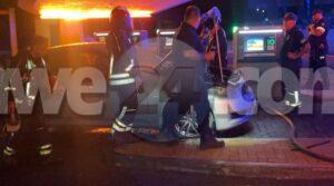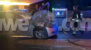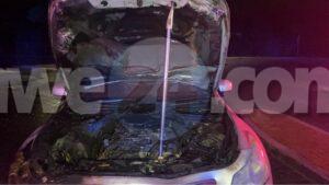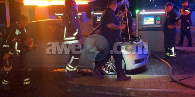 Diamars anochi a drenta informe di cu tin un auto na candela na Aruba Bank na Hato, mesora a dirigi tanto polis como bombero na e sitio. Na yegada di e patruya mesora nan a yuda e chauffeur saca su pertenencianan di e auto cual e parti di dilanti tabata saca huma y tabata na candela. Mesora e bomberonan tambe a yega y a logra paga e candela inmeditamente manteniendo e candela den e hood.