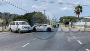 Diaranzon mainta a drenta informe di un accidente cu hende herida na Pos Abao, mesora a dirigi tanto polis como ambulans na e sitio. Na yegada di e patruya a bin compromde cu aki ta trata di un accidente unda cu e chauffeur di un Hyundai H1 van biniendo for di nort no a para pa duna preferencia na e Nissan Fairlady Z y nan a dal den otro y door di e impacto a bira 45 grado. Debi na e impacto e chauffeur di e van a resulta herida. Na yegada di e ambulans nan a atende e victima.