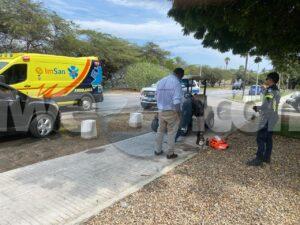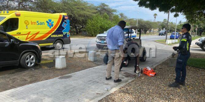 Diasabra atardi a drenta informe di un incidente unda un turista a resulta herida dilanti Divi Dutch Village, mesora a dirigi tanto polis como ambulans na e sitio. Na yegada di e patruya a bin compronde cu aki ta trata di un incidente unda un turista riba un scooter electrico a baha for di e stupi y ora a bay subi bek a dal abao kap su cabes. Na yegada di e ambulans nan a atende e victima y a transporte pa hospital.