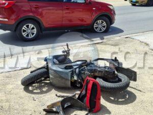 Diamars merdia a drenta informe di un accidente cu hende herida na Santa Cruz, mesora a dirigi tanto polis como ambulans na e sitio. Na yegada di e patruya a bin compronde cu aki ta trata di un accidente unda cu un auto s.u.v. a bay dal un U-Turn paero den e proceso aki ela dal un motociclista bente herid’e. Na yegada di e ambulans nan a atende e victima cu tabata tin su curpa na rasca.