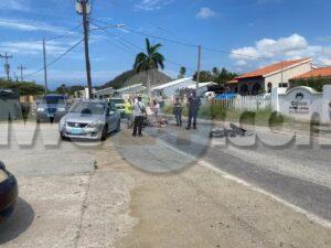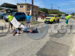 Diahuebs mainta a drenta informe di un accidente cu hende herida na Jucuri, mesora a dirigi tanto polis como ambulans na e sitio. Na yegada di e oficier di ambulans a pidi pa polis y ambulans ya cu ta trata di un hoben 14 aña cu trauma na cabes cu a subi caminda sin wak net ora un auto ta bini y a purba desvia pero e impacto tabata inevitable y a dal e. Mientrastanto e officialnan di ambulans a atende como no tabata tin ambulans disponibel na e momentonan ey. Na yegada di e ambulans nan a atende y transporte pa hospital.