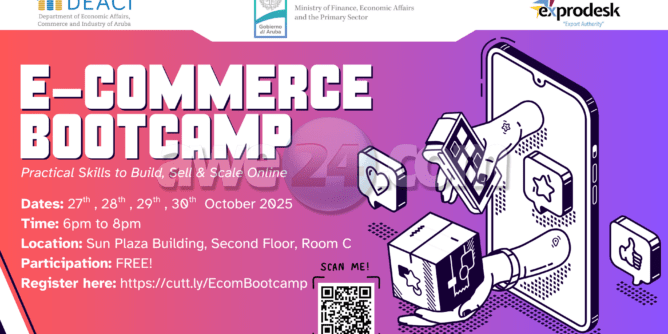ORANJESTAD – Departamento di Asunto Economico, Comercio y Industria (DAECI), pa medio di su unidad Exprodesk, ta orguyoso pa anuncia e workshop di 4 dia “E-Commerce Bootcamp: Practical Skills to Build, Sell & Scale Online”, cu lo tuma luga di 27 te 30 di october 2025. Participacion ta completamente gratis!
