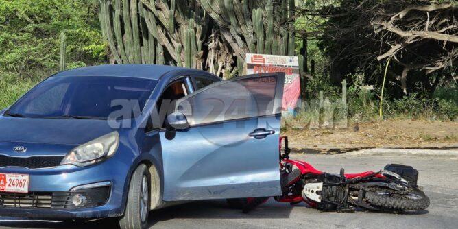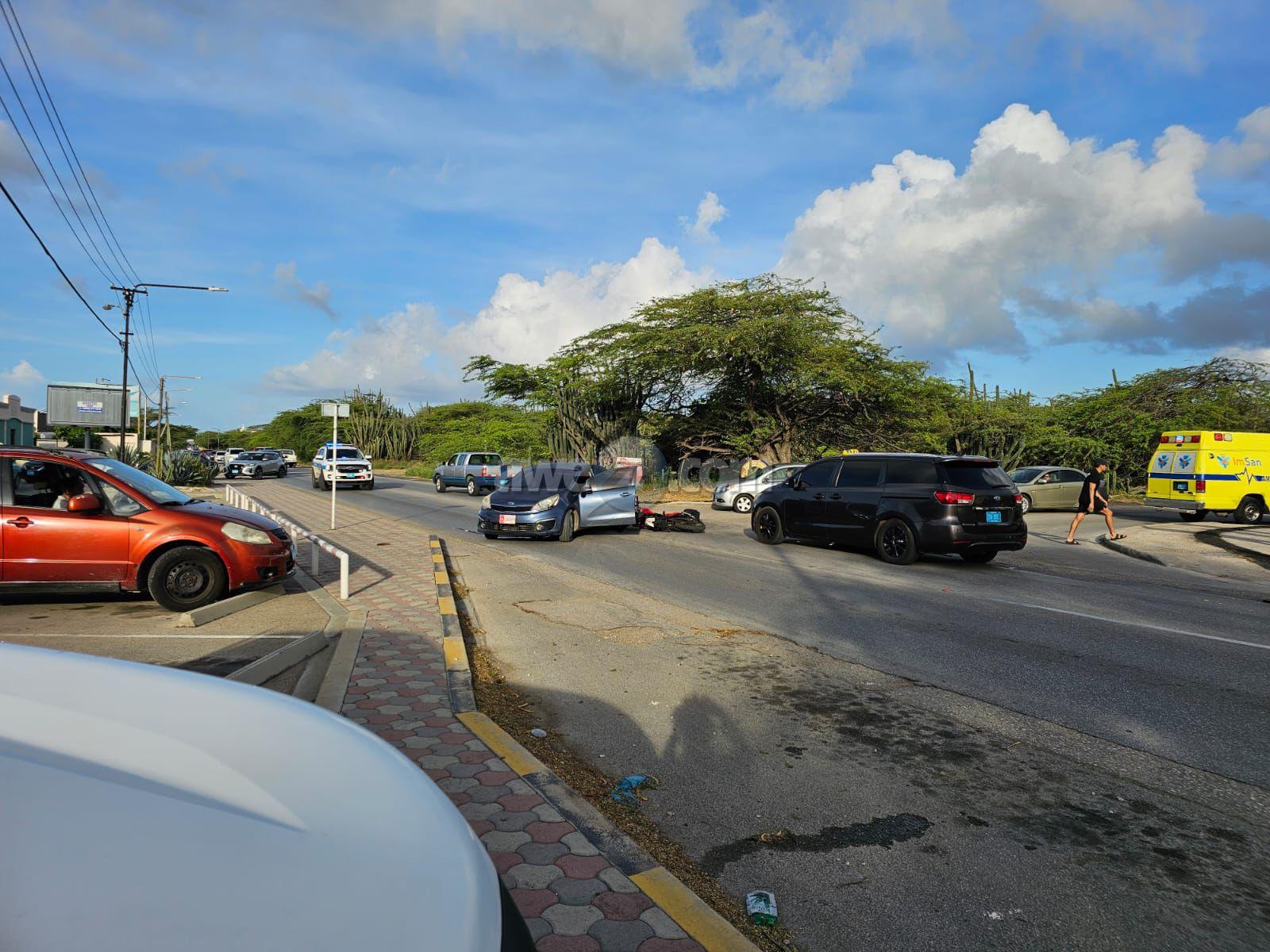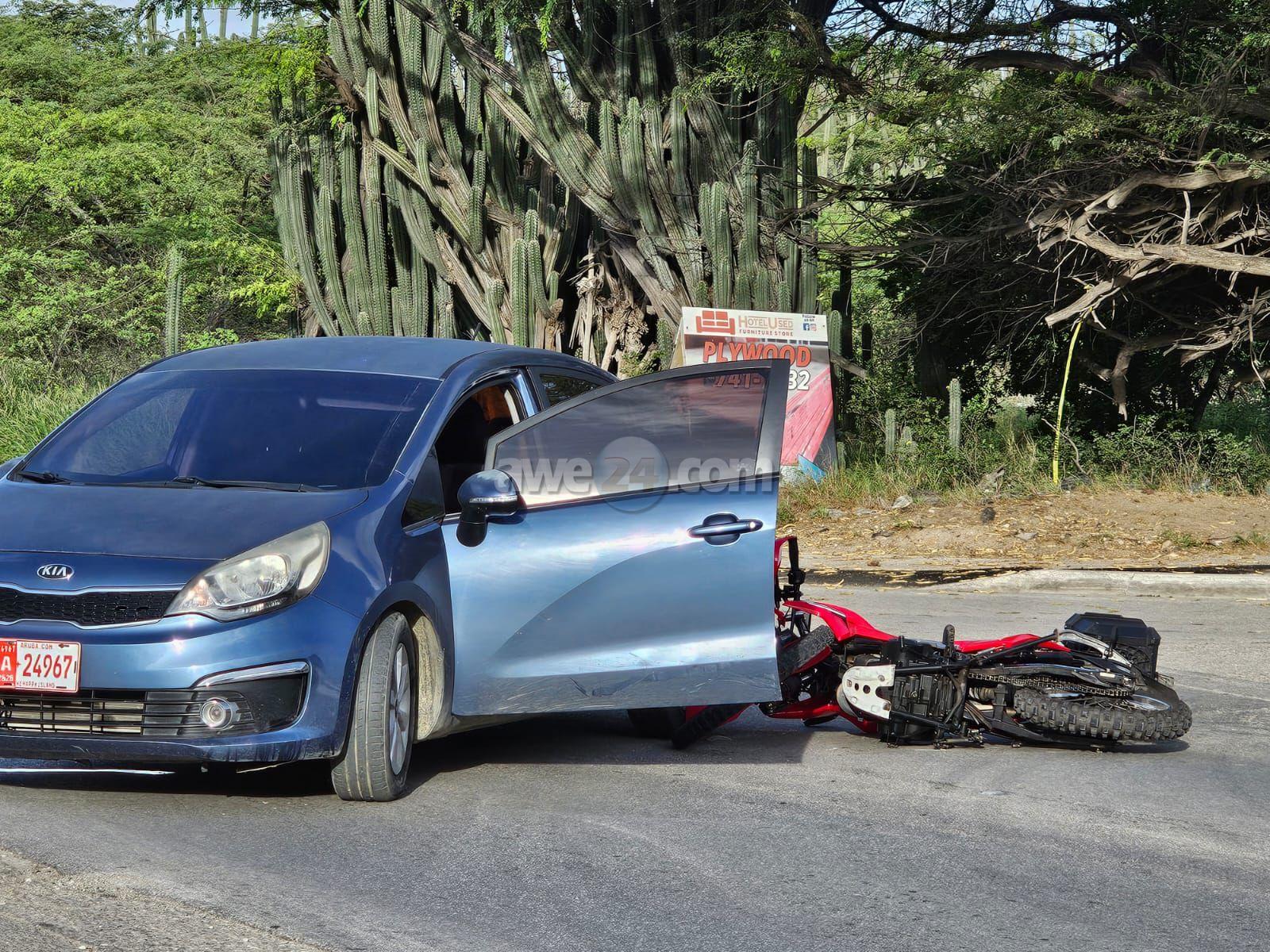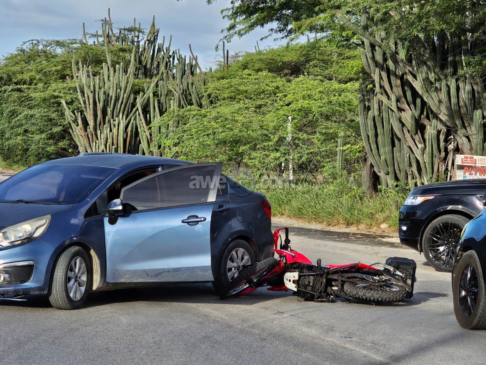Dialuna mainta a drenta informe di un accidente di un hende herida dilanti Cayena Mall, mesora a dirigi tanto polis como ambulans na e sitio. Na yegada di e patruya a bin compronde cu aki ta trata di un accidente entre un auto y un motorcycle. Na yegada di ambulans nan a atende e motociclista herida na e sitio mes.