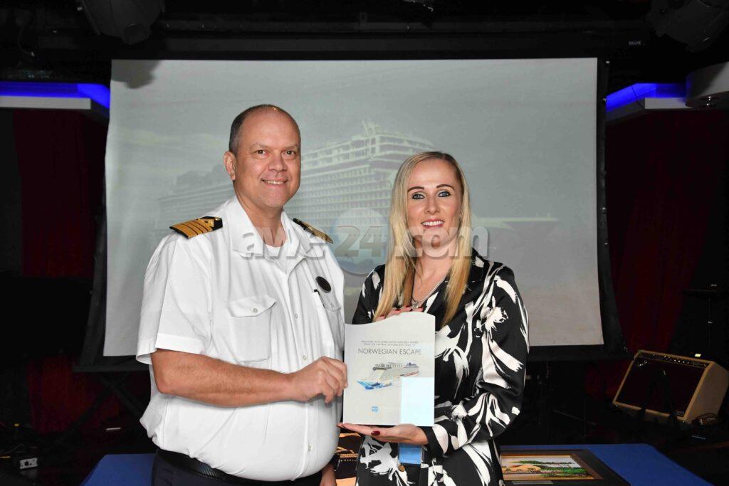 Norwegian Escape, unda tabatin un ceremonia tradicional di intercambio di plakkaat. E intercambio aki ta