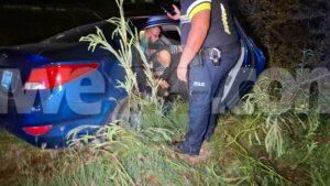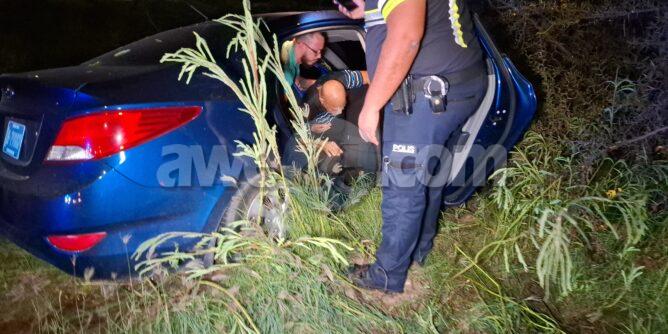 Diabierna madruga a drenta informe di un accidente riba Sasakiweg, mesora a dirigi tanto polis como ambulans na e sitio. Na yegada di e patruya a bin compronde cu aki ta trata di un incidente unda un pareha di edad cu a caba di sali for di casino pa un motibo of otro a sali for di casino y a baha caminda y a bay cay den e greppel meymey di e vianan. Como cu nan tabata tin problema pa sali for si e auto a laga ambulans bini pa observa nan pero afortunadamente ningun hende a resulta herida.