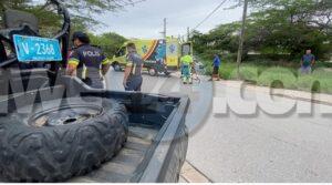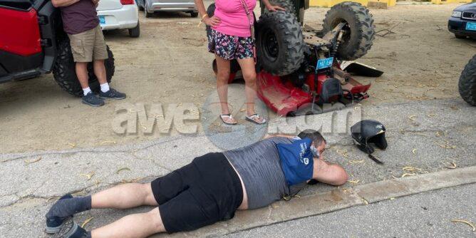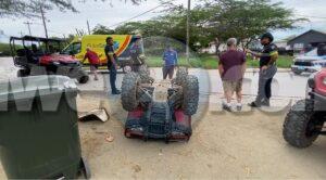 Diabierna mainta a drenta informe di un incidente cu hende herida na Siribana, mesora a dirigi tanto polis como ambulans na e sitio. Na yegada di e ambulans mesora a atende e victima mientras na yegada di e patruya a bin compronde cu e manehador un turista biniendo for di nort a perde control y bolter cu e quad. E victima a fractura su man robes y a haya un herida na su rudia robes. Ambulans a atende y a transporte pa hospital.