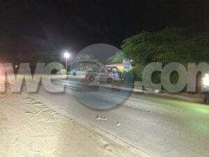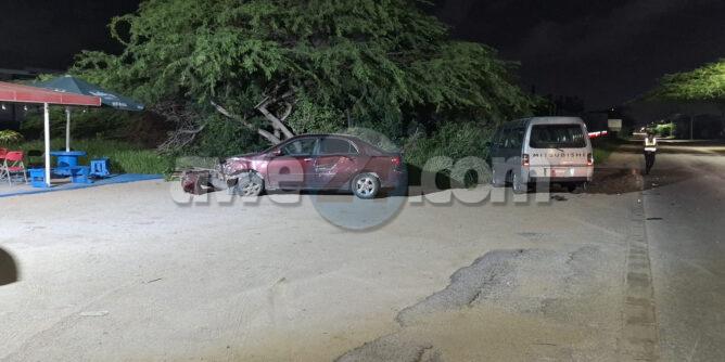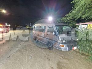 Diasabra madruga a drenta informe di un accidente dilanti di Ruiz Take Away na Tanki Leendert, mesora a dirigi un patruya na e sitio. Na yegada di e patruya a bin compronde cu aki ta trata di un accidente unda cu un van a bay pa pasa un auto net ora esaki ta bira na man robes y ta dal den dje na banda. Afortunadamente ningun hende a resulta herida.