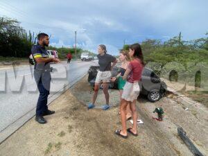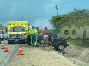 Diasabra mainta a drenta informe di un accidente cu hende herida riba e caminda di Tanki Flip pa Hato, mesora a dirigi tanto polis como ambulans na e sitio. Na yegada di e ambulans nan a compronde cu e dama chauffeur a haya unicamente un corta na su man pero e no tabata desea atencion di ambulans. Na yegada di polis a bin compronde cu e dama chauffeur di e Kia Rio a perde control bolter bay cay riba e greppel.