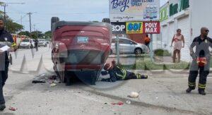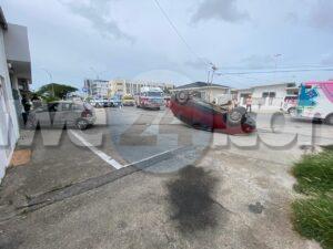 Diadomingo atardi a drenta informe di un accidente cu hende herida na Caya Boes Orman. Mesora a dirigi tanto polis como ambulans na e sitio. Na yegada di e patruya a bin compronde cu aki ta trata di un accidente unda un Hyundai Tucson biniendo di pariba lo a bay banda robes di caminda dal riba un Kia Picanto di direccion contrario manda esaki bay dal riba e porta di negoshi. Na yegada di e bombero a bin compronde cu aki ta trata di un a bay over na saca e victima pasahero di e Tucson y na yegada di e ambulans a tume over. Ademas den e otro vehiculo tabata tin un otro hende herida. Ta trata di un dama cu a ser atendi na e sitio mes mientras e otro a ser hiba hospital.