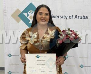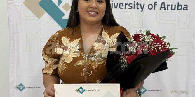 ORANJESTAD – Dia 8 di october 2025, Emy Lacle a defendesu tesis exitosamente y a obtene e titulo di ‘Bachelor of Arts’ for di e programa Organization, Governance and Management, Facultad di Arte y Ciencia. Emy a defende su tesis “Introducing Community Policing in Aruba: Exploring Strategies and Factors for Successful Implementation” dilanti di e comision di graduacion cu tawata consisti di Thais Franken, MSc, Dr. Miekede Droog y Ramon Arnhem, MSc. Ademas tabata presentemanager di e programa OGM, Ahmet Talan, MSc, famia di Emy, docente di Universidad di Aruba y colega di estudio tambetawata presente.