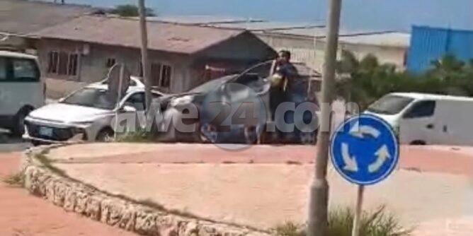 Dama di edad na stuur a bay dal tras di Hyundai y sigui day dal un palo di lusna rotonde Paradera