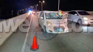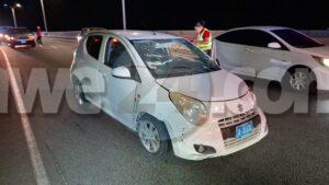 Dialuna madruga a drenta informe di un accidente riba E.J. “Watty” Vos blvd. net riba e brug na Meiveld, mesora a dirigi un patruya na e sitio. Na yegada di e patruya a bin compronde cu e chauffeur di un Suzuki Celerio coriendo cu velocidad halto a perde control dal na e rand di e brug bolter bay cay bek riba su wielnan hera pasa over di e brug. E chauffeur afortunadamente no a resulta herida pero aparentemente lo a ser hiba warda pa test.