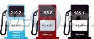 Gasoline unleaded-premium        : 219,2 cen p/ltr. (-  9,5 cen)