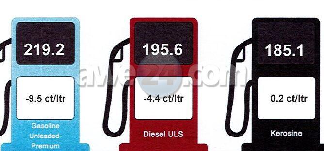 Diesel ULS                                       : 195,6 cen p/ltr. (-  4,4 cen)