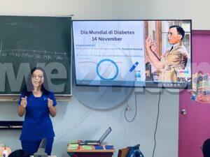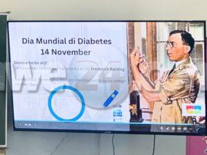 Den cuadro di e Dia Mundial di Diabetese (14 di november), Aruba One Happy Island Lions Club, den colaboracion cu POH (Praktijkondersteuners Huisartsenzorg), a brinda diahuebs mainta un charla educativo y interactivo na klas 4 y 5 di Colegio Santa Famia na Pos Chiquito.