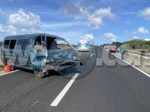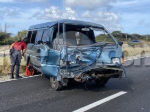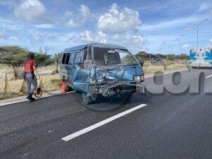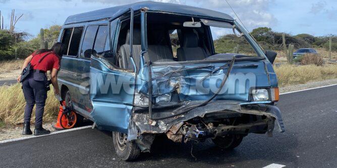 Diabierna mainta a drenta informe di un accidente cu hende herida riba e caminda principal di Barcadera pa Balashi, mesora a dirigi tanto polis como ambulans na e sitio. Na yegada di e patruya a bin compronde cu aki ta trata di un accidente unda e chauffeur di un Mitsubishi L300 van cu no a regula su velocidad a bay dal tras di un Mustang GT. Debi na e impacto 5 perona a resulta herida pero un di nan so a desea atencion di ambulans.