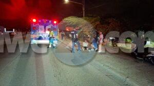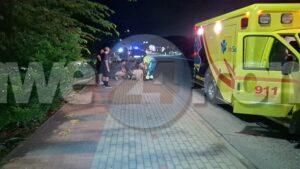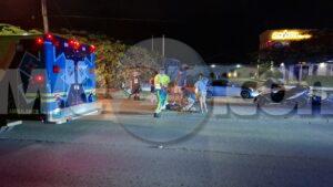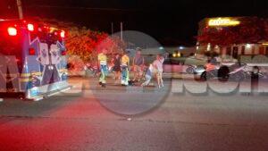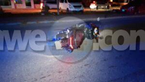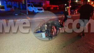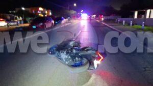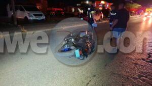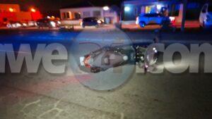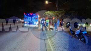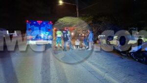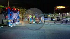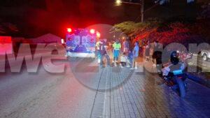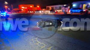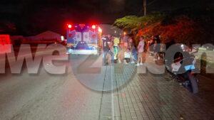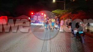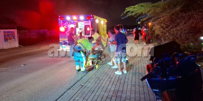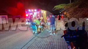 Diabierna anochi a drenta informe di un accidente cu hende herida na Piedra Plat, mesora a dirigi tanto polis como ambulans na e sitio. Na yegada di e patruya a bin compronde cu un motociclista a haya su mes cara a cara cu un auto pasando otro auto y e mester a desvia y a subi acera pero riba e acera tabata tin un peaton canando y a bay dal e anto e mes a cay tambe mientras su brommer a lastra bay para meymey di caminda. Na yegada di e 2 ambulansnan nan a atende e victimanan mientras polis a busca testigonan cu por a mira e number di auto cu tabata pasando e autonan. Tur 2 victimanan a ser atendi y transporte pa hospital.