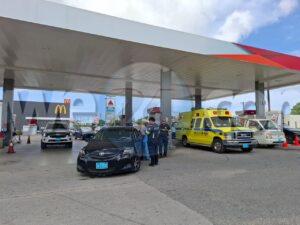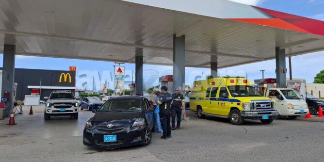 Diasabra merdia a drenta informe di un incidente na Citgo Santa Cruz, mesora a dirigi tanto polis como ambulans na e sitio. Na yegada di e patruya a bin compronde cu un auto cu tabata tank a ranca sali y e slang a kita bay dal e trahador na su man y a resulta herida. Na yegada di e ambulans nan a atende e victima na e sitio mes.