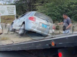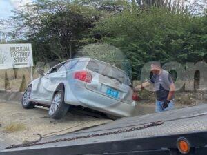 Dialuna atardi a drenta informe di un accidente na e rotonde di Hato, mesora a dirigi un patruya na e sitio. Na yegada di e patruya a bin compronde cu aki ta trata di un incidente unda un auto pa no dal tras di un otro auto a kita na man drechi y a bay cay den e greppel. Afortunadamente ningun hende a resulta herida.