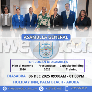 Den cuadro di bon gobernansa y transparencia cu tur federacion miembro y comunidad deportivo di Aruba, Comite Olimpico Arubano (COA) lo tene nan sigueinte Asamblea General dia 06 di december proximo. Durante e asamblea aki, lo trata e prespuesto y plan di  maneho pa 2026 ademas di algun otro punto di interes. Manera ta conoci, proximo aña lo ta uno cu hopi evento grandi pa COA, entre otro posibel participacion na 4 diferente Weganan di e ciclo Olimpico.