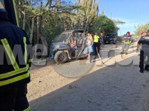 Diahuebs atardi a drenta informe di un accidente cu hende herida na Franse Pas. Mesora a dirigi tanto polis como ambulans na e sitio, Na yegada di e patruya a bin compronde cu aki ta trata di un accidente unda chauffeur di un UTV a desvia pa un auto grandi cu tabata bin riba dje y a bay dal den cadushi den mondi. E auto grandi a sigui core bay. Na yegada di e ambulans nan a atende e tres damanan cu a resulta herida. Polis ta investigando e accidente aki unda e chauffeur di e auto grandi a bay.