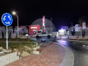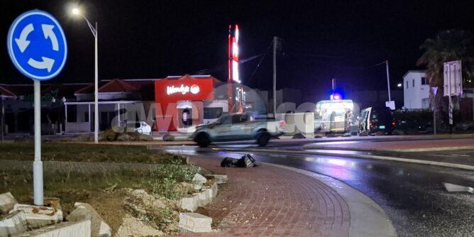 Diadomingo madruga a drenta informe di un accidente na e rotonde Palm Beach, mesora a dirigi un patruya na e sitio. Na yegada di e patruya a bin compronde cu aki ta trata di un accidente unda e chauffeur lo a brake pero como caminda ta muha ela slip bay dal riba e rotonde. Asina mes ela purba sigui pero no a yega mucho leu y a bay para te na Aqua Grill. Afortunadamente ningun hende a resulta herida.
