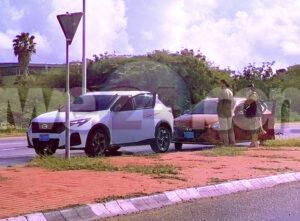 Diadomingo mainta a drenta informe di un accidente cu hende herida pariba di e rotonde airport, mesora a dirigi un patruya na e sitio. Na yegada di e patruya a bin compronde cu aki ta trata di un accidente unda cu e chauffeur di un Hyundai Accent no a regula su velocidad ni mantene distancia a bay dal tras di un suv. Afortunadamente ningun hende a resulta herida.