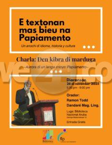 Diaranson dia 26 di november proximo Fundacion Lanta Papiamento (FLP) ta organisa un anochi di charla presenta pa Señor Ramon Todd Dandaré Mag. Ling.