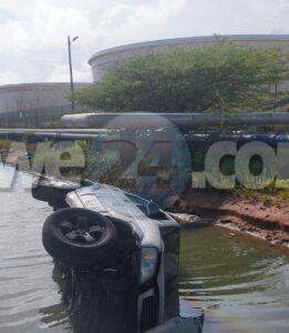 Diasabra mainta ambulans pasando na Zeewijk a nota di cu tin un auto gebolter cu e banda di chauffeur den e awa, mesora a bati alarma y a dirigi tanto bombero como polis na e sitio. Na yegada di e bomberonan a drenta den e awa pero no logra haya hende den e auto pero pa mas sigur na yegada di polis a pidi pa un takelwagen pa asina saca e auto for di e awa. Despues di poco trabao takelwagen cu bomberonan a logra saca e auto for di den e awa y no a haya chauffeur den dje. Pa colmo e auto no tabata tin number di auto y polis a pensa cu lo por ta un auto procedente di ladronicia y a confisca esaki.
