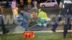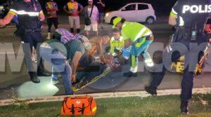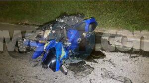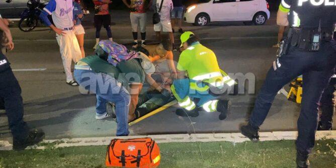 [VIDEO] Motociclista a perde control riba E.J. “Watty” Vos blvd. pasa over di e median bay cay otro banda di caminda.