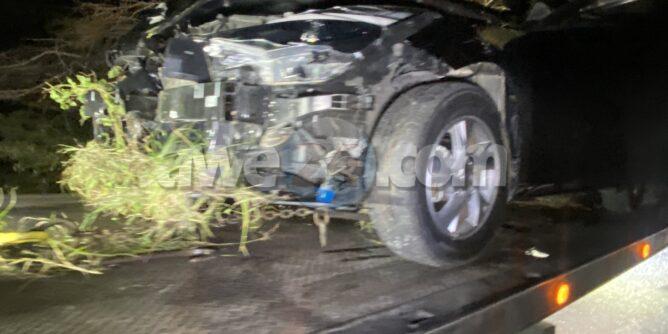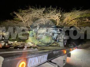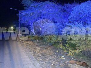 Diadomingo madruga a drenta informe di un accidente panort di e rotonde Balashi, mesora a dirigi un patruya na e sitio. Na yegada di e patruya a bin compronde cu e chauffeur biniendo for di Mondi Fierno bayendo pa e rotonde Balashi a baha caminda na man robes dal un palo di lus kibra y drenta mondi cu e auto. Afortunadamente e no a resulta herida pero polis a detene e chauffeur pa a core auto bao influencia di alcohol.