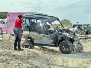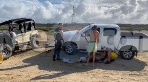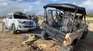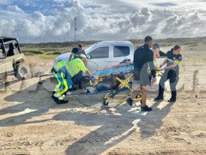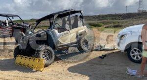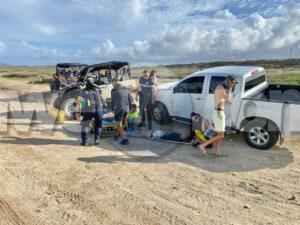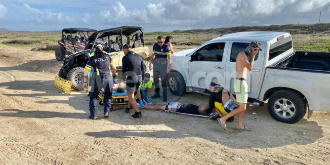 Diadomingo atardi a drenta informe di un accidente basta serio patras di Faro, mesora a dirigi tanto polis como ambulans na e sitio. Na yegada di e patruya a bin constata cu nan lo a bolter cu un UTV y a resulta seriamente herida pa cual motibo a pidi pa ambulans bini cu mas urgencia. Ya cu e mucha muher menor di edad parce no ta reacciona mucho bon y a haya basta sla y e otro victima un mucha homber a haya sla na cabes y e rollbar di e UTV a cay riba su lomba y ta sangrando pa cabes. Na yegada di e 2 ambulansnan nan a atende e victimanan y a trasnporta ambos pa hospital.