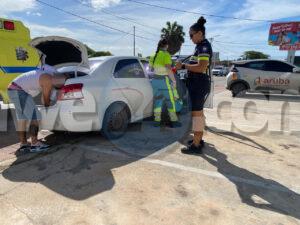 Dialuna atardi a drenta informe di cu un mucha muher lo a staka su mes den auto cu un obheto skerpi durante un discucion, mesora a dirigi tanto polis como ambulans na e sitio. Na yegada di e patruya a bin compronde cu aki ta trata di un discucion cu e pareha tabata tin den e auto y e mucha muher a coy un obheto skerpi y a corta su mes y tabata sangrando pa e motibo ey e chauffeur a para y a avisa ambulans di locual tabata pasando. Na yegada di e rapid responder di ambulans nan a atende e mucha muher na e sitio mes y den consulta cu su dokter di cas a djies sera e herida y a lague sigui su caminda.