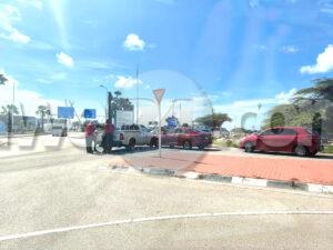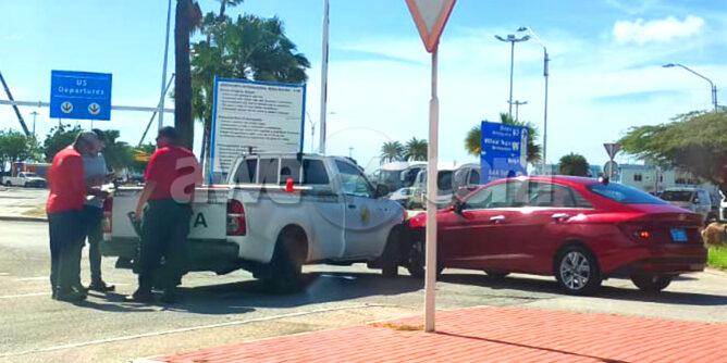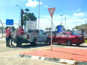 Dialuna atardi a drenta informe di un accidente dilanti di airport, mesora a dirigi un patruya na e sitio. Na yegada di e patruya a bin compronde cu aki ta trata di un accidente pa falta di preferencia unda e pick-up no a duna preferencia na e auto cu a sali for di e rotonde. Afortunadamente ningun hende a resulta herida.
