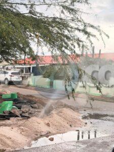Diahuebs mainta durante trabaonan di un t cobamento banda di caminda na Dakota un di e trahadonan a dal un piek riba un tubo di awa y esaki a cuminsa spuit. Mesora a yama W.E.B. pa bin atende e cu e problema di awa aki.