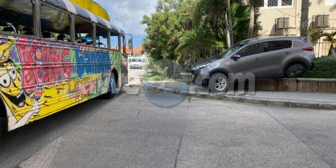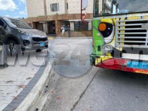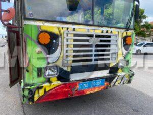 Diasabra merdia a drenta informe di un accidente cu hende herida na e crusada Julianastraat cu Irenestraat, mesora a dirigi tanto polis como ambulans na e sitio. Na yegada di e patruya a bin compronde cu aki ta trata di un accidente unda e chauffeur di un Kia Sportage biniendo den Julianastraat no a para pa duna preferencia na e bus cu tabata bayendo nort den Irenestraat. E bus a dal e Sportage bir’e 180 grado y mand’e den e baki mata. Un dama pasahero sinta net e banda di e impacto a resulta herida. Na yegada di e ambulans nan a atende e dama y a transporte pa hospital. Un rato despues a descubri cu e tanki tabata leak gasolin y a pidi bomberonan pa bini na e sitio pa ora a saca e auto for di e baki mata.