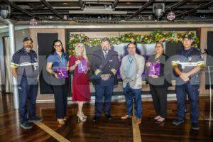 Pa honra e bishita inaugural, un ceremonia di intercambio di plakkaat a tuma lugar abordo di e barco. E tradicion maritimo aki ta simbolisa colaboracion y fortalecemento di laso entre e compania di crucero y e destino. Representando APA NV na e ceremonia tabata Mario Arends, Chief Commercial Officer, conhuntamente cu Monica Bos, Cruise Manager, di A.T.A., y Maureen Palm representando agencia di waf Maduro & Sons. Capitan Simon, un lider maritimo cu tin hopi experiencia y cu a bishita Aruba durante decadanan, tambe tabata presente na e ceremonia.