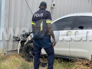 Diadomingo atardi a drenta informe di un accidente cu hende herida na Kamay, mesora a dirigi tanto polis como ambulans na e sitio. Na yegada di e patruya a bin compronde cu aki ta trata di un accidente unda un Honda HRV bayendo nort riba e caminda di Kamay a hala na man robes subi acera na e crusada di Kamay core riba caminda di tera y bay dal fuertemente riba e container di 20 pia pusha esaki dal y basha un cura di cas den reconstruccion. Na yegada di e 2 ambulans nan a atende ambos y a transporta nan pa hospital.