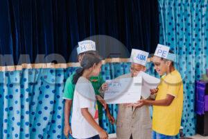 obra de teatro escolar con Wings of Hope y utilería del Aeropuerto AUA, y un obsequio