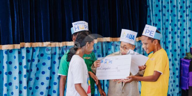 teatral di scol cu material di Wings of Hope y AUA Airport y un regalo special decora cu