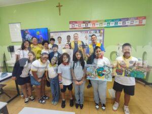 Diamars mainta, durante un acto oficial na St. Paulus School, tres hoben talentoso a wordo honra y reconoce como ganado di e Lions International Peace Poster Contest 2025 organisa pa Aruba Oen Happy Island Lions Club.