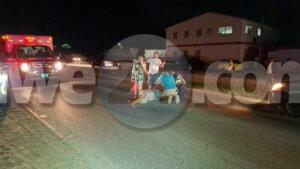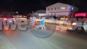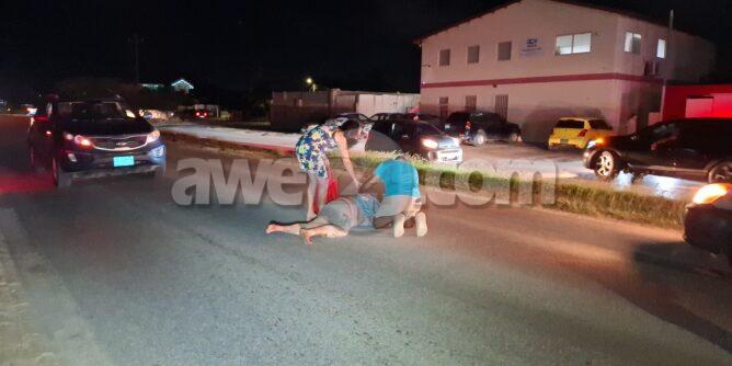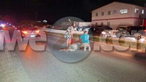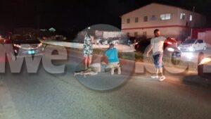 Dialuna anochi a drenta informe di un accidente cu hende herida na Solito, mesora a dirigi tanto polis como ambulans na e sitio. Na yegada di e patruya a bin compronde cu aki ta trata di un dama cu a yega bay crusa e caminda sin wak y net un auto a pasa dal e bente abao y heride. Na yegada di e ambulans nan a atende e dama herida y a transporte pa hospital.