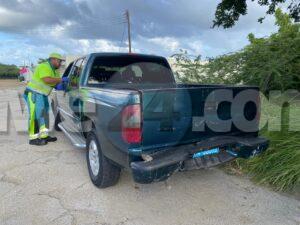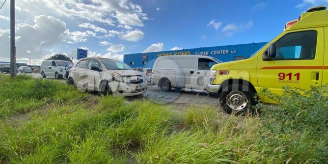 Diamars mainta a drenta informe di un accidente cu hende herida dilanti Hong Kong Supermarket na Paradera, mesora a dirigi tanto polis como ambulans na e sitio. Na yegada di e patruya a bin compronde cu aki ta trata di un accidente unda cu e chauffeur di un Nissan March no a regula su velocidad ni a mantene distancia a bay dal tras di e Chevrolet S100 su dilanti. Debi na e impacto e dama chauffeur di e pick-up a resulta herida. Na yegada di e ambulans nan a atende e victima.