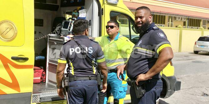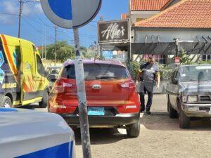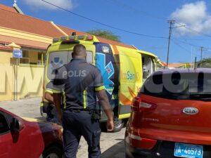 Diahuebs merdia a drenta informe di un dama herida na cabes cu un boter na un bar den Oranjestad, mesora a dirigi tanto polis como ambulans na e sitio. Na yegada di e patruya a bin compronde cu aki ta trata di un problema di pareha cual a termina unda e homber a dal su casa cu un boter na cabes herid’e y a bandona e sitio. E dama a sali afo y a cay flauw un otro persona cu ayudo di 2 otro a logra pone e dama den sombra den un auto. Na yegada di e ambulans nan a atende y ela bin bij e personal di ambulans a bis’e cu nan mester hib’e hospital pa cos’e pero e no tabata desea esey y a baha for di e ambulans y a keda na e sitio posiblemente nan lo hib’e hospital cu auto particular.