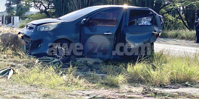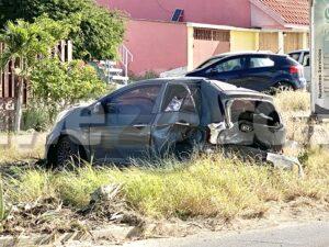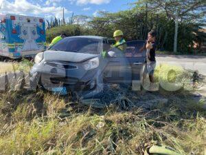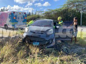 Diabierna mainta a drenta informe di un accidente basta fuerte cu hendenan herida na Piedra Plat, mesora a dirigi tanto polis como ambulans na e sitio. Na yegada di e patruya a bin compronde cu aki ta trata di un accidente unda un auto Kia Picanto di panort maneha pa un damita a bay subi caminda pa bay pariba net ora un Toyota Corolla tabata bayendo pariba cu velocidad basta halto y a bay dal tras di e Kia Picanto cu a sali su dilanti y a mande bay dal riba e piedranan banda di caminda. E chauffeur masculino di e Corolla a lastra un brake basta largo prome cu a dal e auto y a bay para hopi mas pariba. Debi na e fuerte impacto ambos chauffeur a resulta herida. Na yegada di e ambulansnan nan a saca e damita cu a keda pega den e auto mientras e otro chauffeur a sali cu su mesun forsa for di e auto. Nan a atende ambos y a transporta nan pa hospital. Polis di trafico a presenta pa e investigacion di e accidente aki.