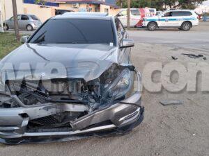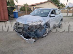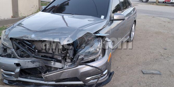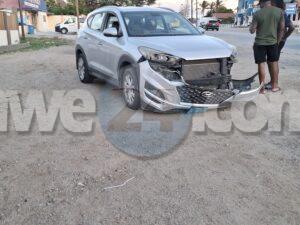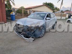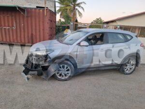 Diabierna atardi a drenta informe di un accidente na e crusada pariba di rotonde Cumana, mesora a dirigi un patruya na e sitio. Na yegada di e patruya a bin compronde cu aki ta trata di un accidente pa falta di preferencia unda un auto saliendo for di e rotonde a bira dilanti un s.u.v. bayendo pabao y nan a dal den otro. Afortunadamente ningun hende a resulta herida pero un di e chauffeurnan no por a mustra cu su papelnan di auto ta na ordo.