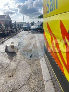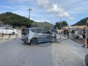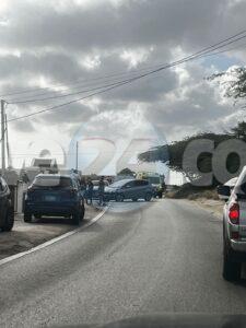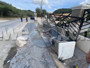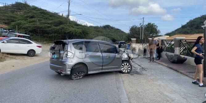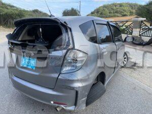 Diasabra atardi a drenta informe di un accidente cu hende herida na Mahuma, mesora a dirigi tanto polis como ambulans na e sitio. Na yegada di e patruya a bin compronde cu aki ta trata di un accidente unda e chauffeur di un Honda Fit a baha banda drechi di caminda y a cay den un “gleuf” ora ela subi bek ela perde control bay dal riba un pilar di garage kibra esaki completamente te cu e impacto a kibra e sienta y e chauffeur a sali door di e impacto via e backshield y a resulta herida. Na yegada di e ambulans nan a atende y a transporte pa hospital.