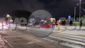 Polis Motorisa ta wak un auto sospechoso na altura di un cas na den Laurens Costenstraat. E agente di Unidad Motorisa aserca e auto y na unda chauffeur a dal e agente su brommer y e pasahero a sali saca un arma di candela.