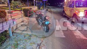 Diahuebs anochi a drenta informe di un accidente cu hende herida banda di Superfood riba Sasakiweg, mesora a dirigi tanto polis como ambulans na e sitio. Na yegada di e patruya a bin compronde cu aki ta trata di un accidente unda un motociclista y un cacho ta envolvi unda e motociclista bayendo nort a haya su mes cu un cacho su dilanti y maske a purba desvia pa evita a dal e cacho mata mientras e motociclista a dal abao pa cual motibo ela resulta herida. Na yegada di e ambulans nan a atende e motociclista pa e golpi y rascanan na su pia. E cacho mes a muri na e sitio y a ser hala un banda pa asina e recogedor di cadaver pasa busca esaki.