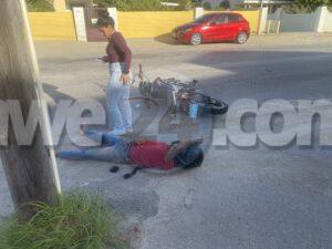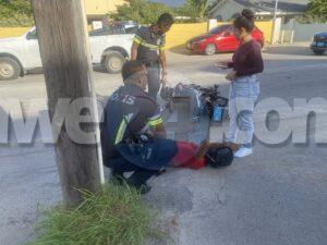 Diabierna mainta a drenta informe di un accidente cu hende herida dilanti di Economic Center na Sero Blanco, mesora a dirigi tanto polis como ambulans na e sitio. Na yegada di e patruya a bin compronde cu aki ta trata di un accidente unda un Suzuki Swift biniendo di nort a bay bira na man robes net ora cu un motociclista ta bay pas’e y nan a dal den otro y motociclista a dal abao y lastra riba e vloer y keda herida abao benta. Na yegada di e ambulans nan a atende e motociclista y a transporte pa hospital.